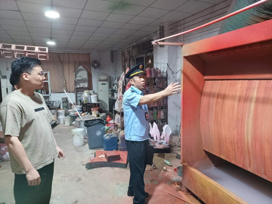 接到電話的文化公司負責人黃經理有些驚訝:“以前都是執法人員直接來查,這次居然先提醒我們自查?”帶著半信半疑的態度,黃經理迅速組織人員對生產車間展開排查,發現上色車間的水簾機過濾棉更換不及時,且車間門窗密閉性不足。與此同時,銷售公司也在自查中揪出了問題:噴漆房廢油漆桶未及時入庫,地面污漬清理不徹底。
