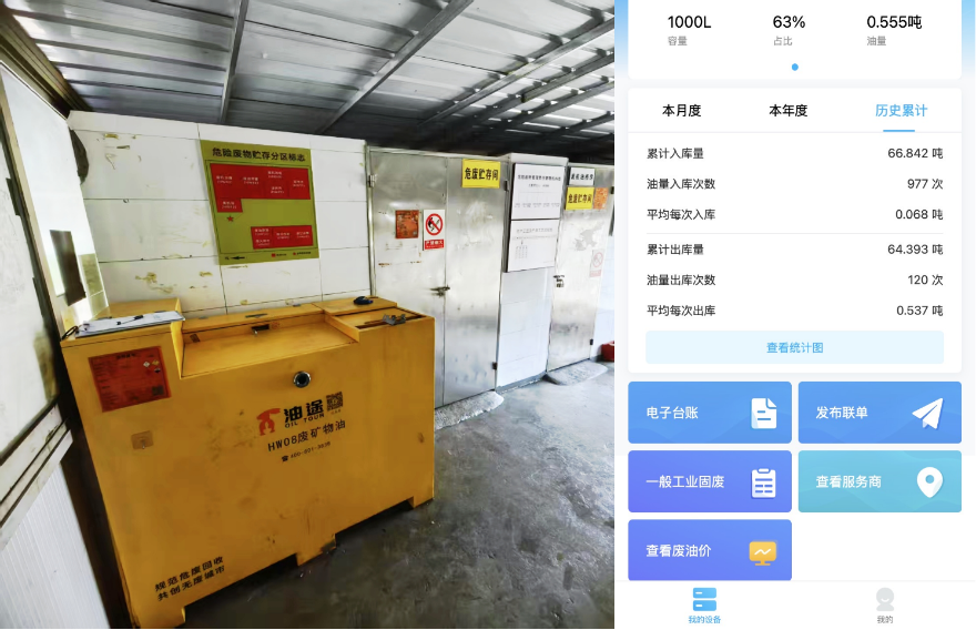 建立機油等涉危險廢物產生原輔材料“采購-使用-廢棄”全流程標準化電子臺賬系統,通過系統自動記錄機油采購量、使用量,以及產生的廢油、空桶和舊濾芯數量、入庫時間及負責運輸處理的單位信息,每一桶廢機油及其關聯的廢機油罐、廢機油濾清器等危險廢物都有自己的“電子足跡”,實現“產生即計量、入庫即追溯、轉移即記錄、處置即核銷”,從源頭到處置一目了然。通過建立標準化電子臺賬,既減輕了企業負擔,避免人工記錄誤差或遺漏,又有效降低企業謊報數據、倒賣廢機油的風險。