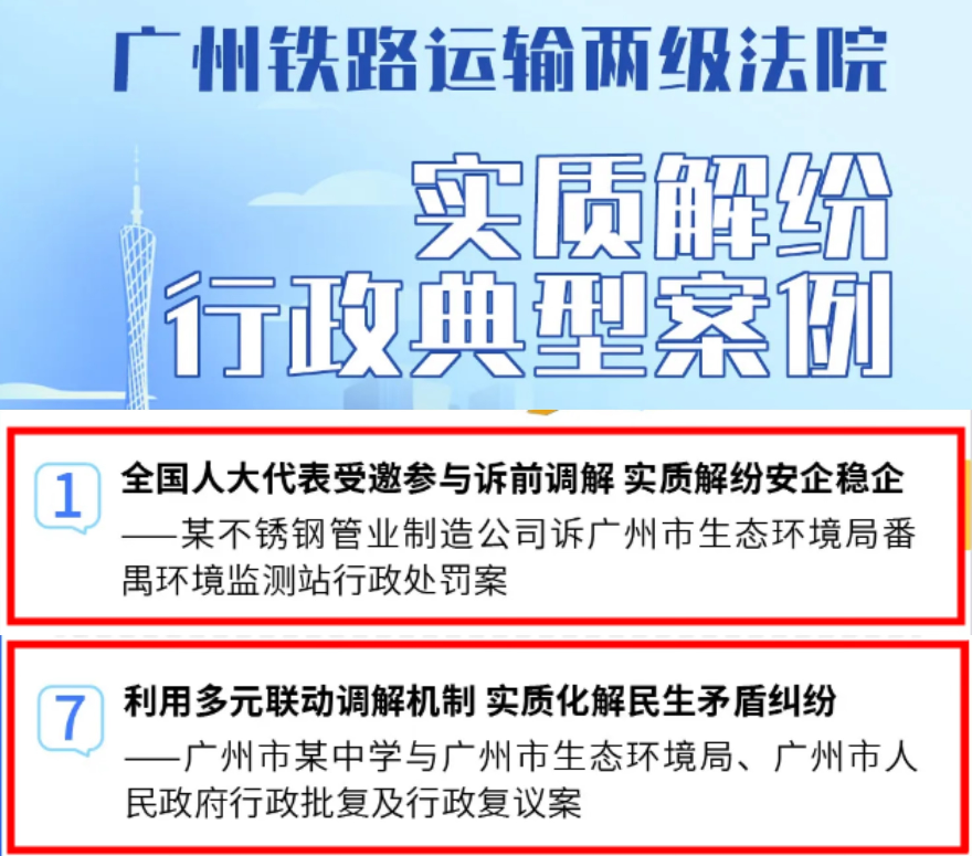 近日,廣州市生態(tài)環(huán)境局兩宗案件入選廣州鐵路運輸中級法院發(fā)布的一批十宗實質(zhì)解紛行政典型案例,生動展現(xiàn)了行政機關(guān)在人民法院指導(dǎo)下積極創(chuàng)新推動行政爭議實質(zhì)解紛、維護社會和諧穩(wěn)定、服務(wù)保障經(jīng)濟社會高質(zhì)量發(fā)展的實踐成果。