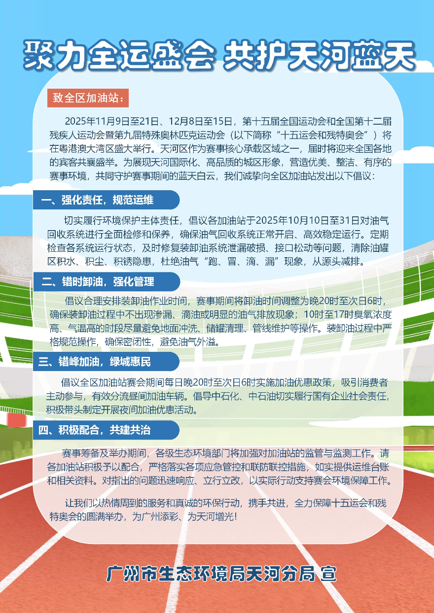 致加油站的“藍天續航員”,呼吁賽會期間將卸油作業安排在晚8點至次日凌晨6點,并鼓勵車主夜間加油,共同減少油氣揮發,守護賽會期間清新空氣。