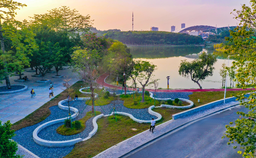 廣州大學城生態碧道則是一個集碧水清流的生態廊道、親近自然的共享廊道以及水陸聯動的發展廊道于一體的碧道系統,完美平衡了生態構建與休憩空間之間的關系。