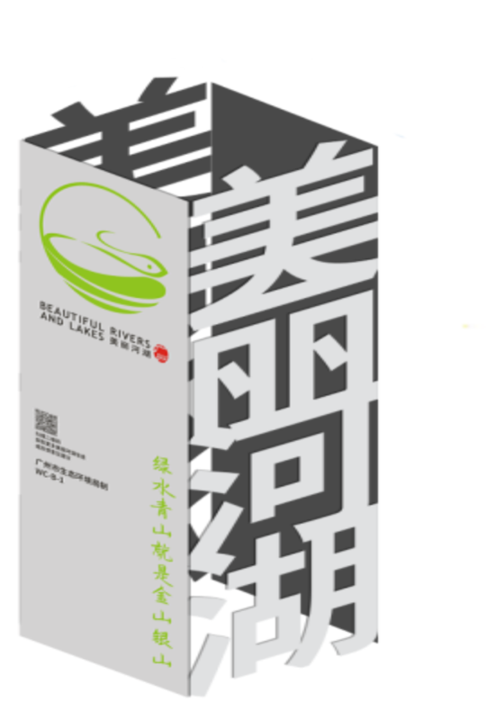 設計以“低干擾、高融合”為原則,打造與河湖生態(tài)共生的視覺語言:鏡面不銹鋼底座借反射“消隱”于環(huán)境,營造“翠色懸浮”的輕盈感;上部選用生態(tài)翠綠,呼應“清水綠岸”;極簡矩形體塊暗藏生態(tài)符號,以人工秩序與自然光影的互動,詮釋“理性設計共生自然”的邏輯。