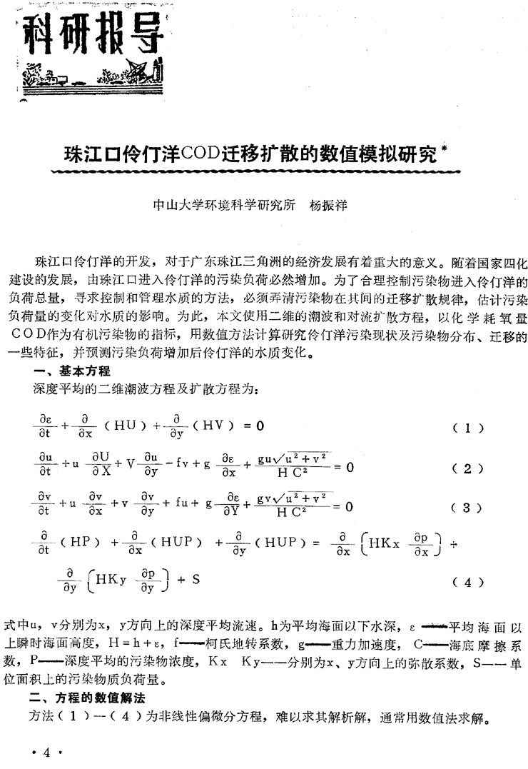 珠江伶何洋COD遷移擴散的數(shù)學模擬研究………………楊振祥(4)
