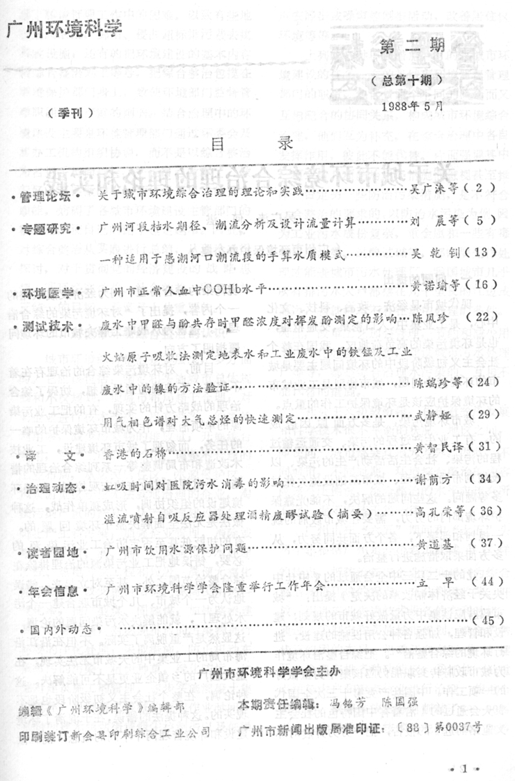 您所在的位置: 首頁 > 行業動態 > 《廣州環境科學》 > 1988年 > 88年第2期