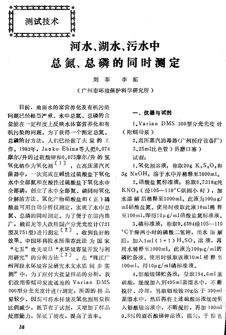 河水、湖水、污水中總氮、總磷的同時(shí)測(cè)定…………………劉 莘等(38)