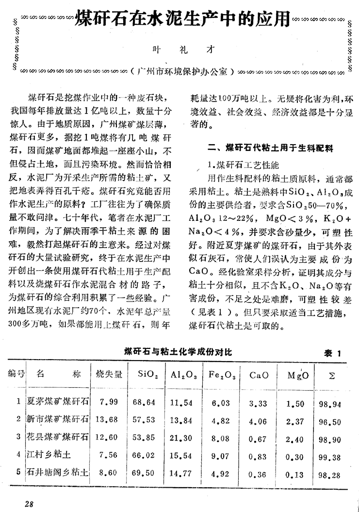 煤矸石在水泥生產中的應用…………………葉禮才(28)