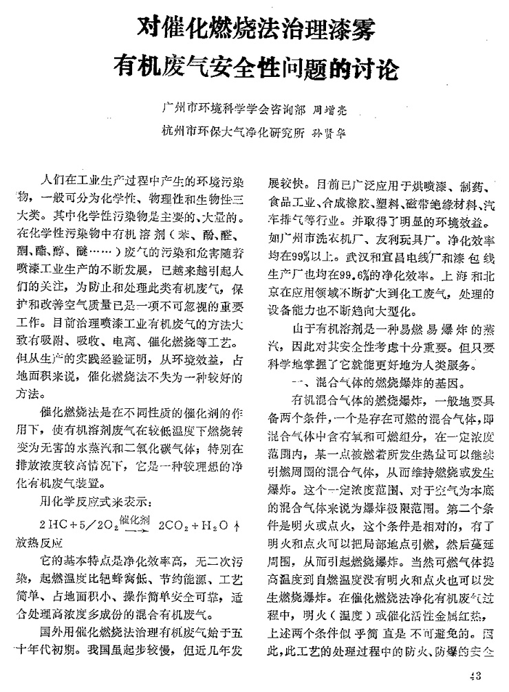 對催化燃燒法治理漆霧有機廢氣安全性問題的討論………周增亮、孫賢華(43)