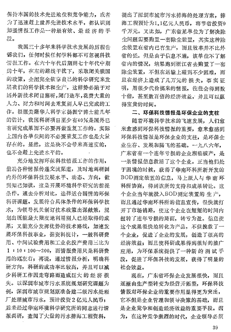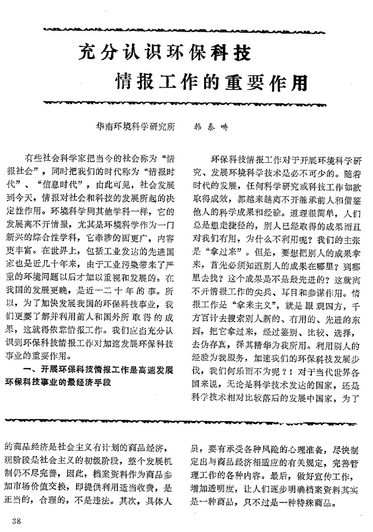 充分認識環保科技情報工作的重要作用…………………韓泰疇(38)