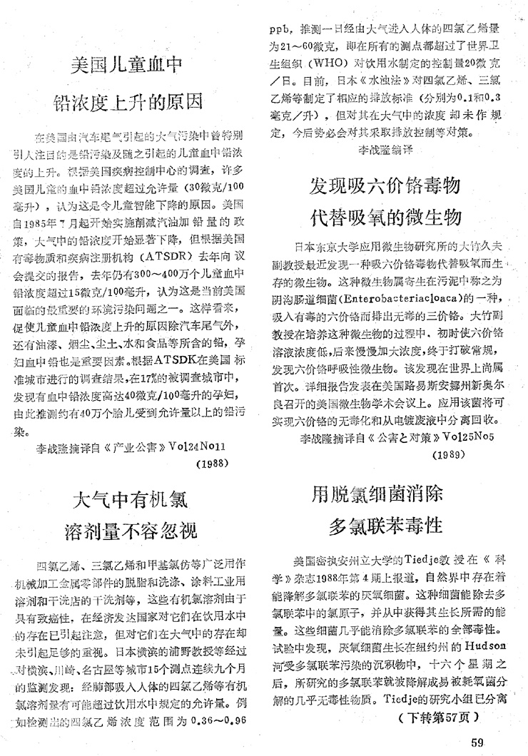 美國兒童血中鉛濃度上升的原因…………………(59)
