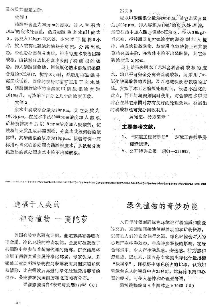 廢水中去除磷酸根及回收磷酸鹽的新工藝…………………黃繩紀(jì)等(55)