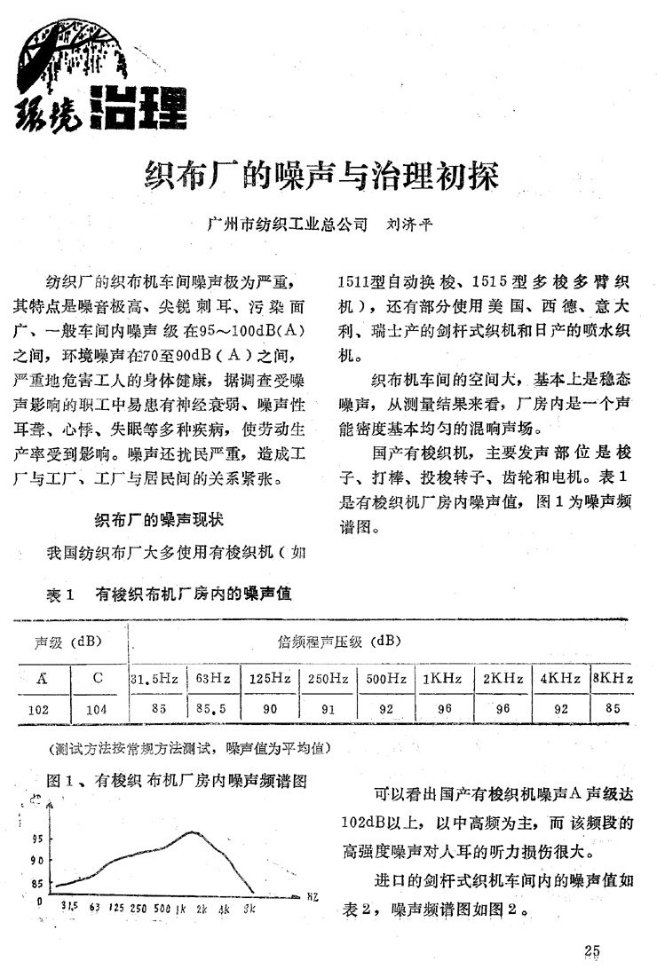 紡織廠的噪聲與治理初探…………………劉濟平(25)