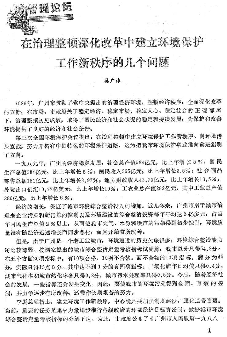 在治理整頓深化改革中建立環境保護工作新秩序的幾個問題……吳廣淶(1)
