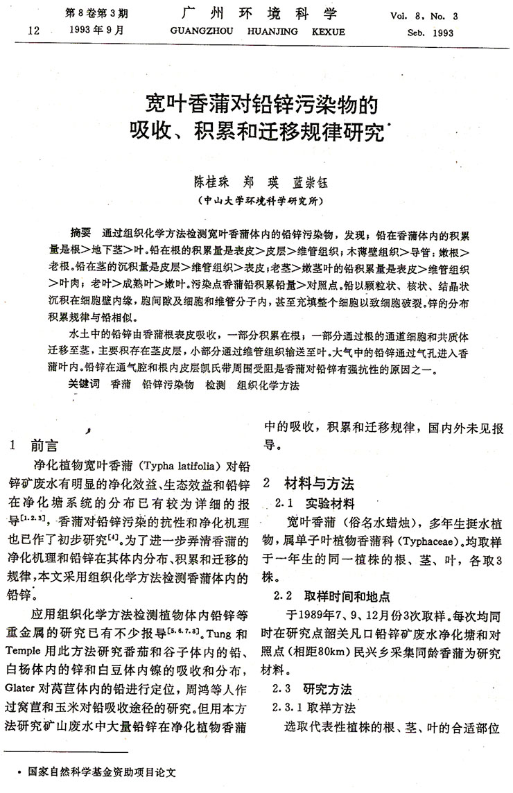 寬葉香蒲對(duì)鉛鋅污染物的吸收、積累和遷移規(guī)律研究…陳桂珠等(12)