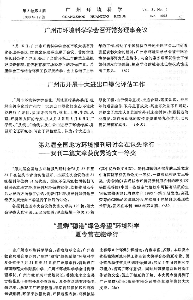 您所在的位置: 首頁 > 行業動態 > 《廣州環境科學》 > 1992年 > 92年第4期