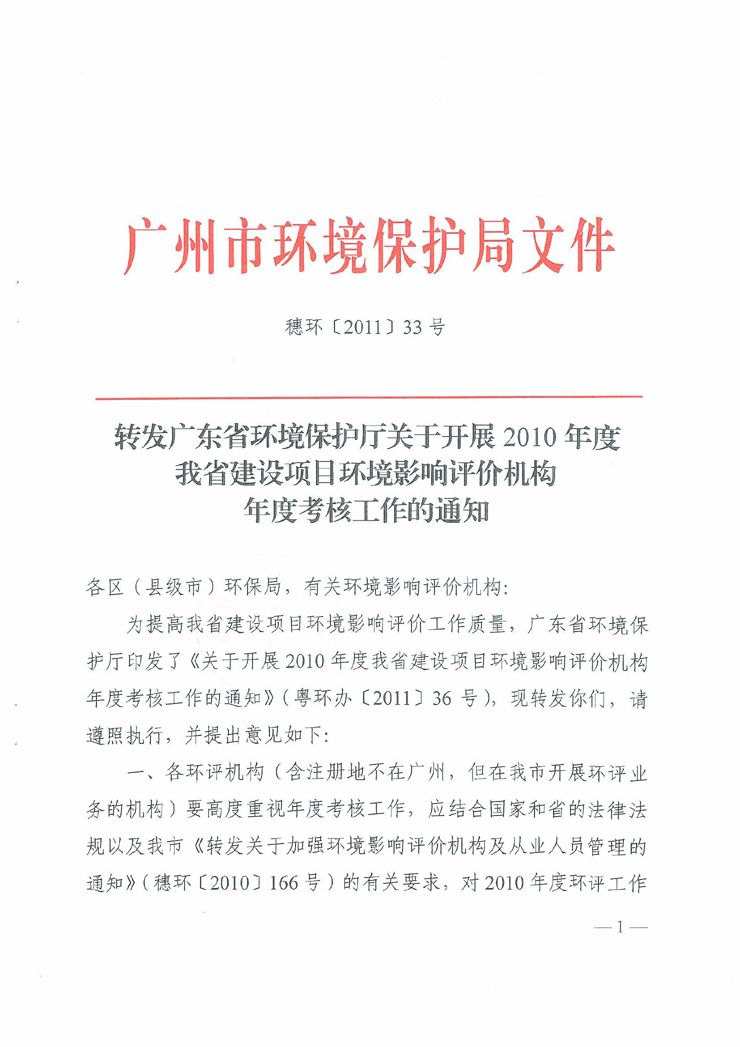 轉(zhuǎn)發(fā)廣東省環(huán)境保護廳關于開展2010年度我省建設項目環(huán)境影響評價機構(gòu)年度考核工作的通知