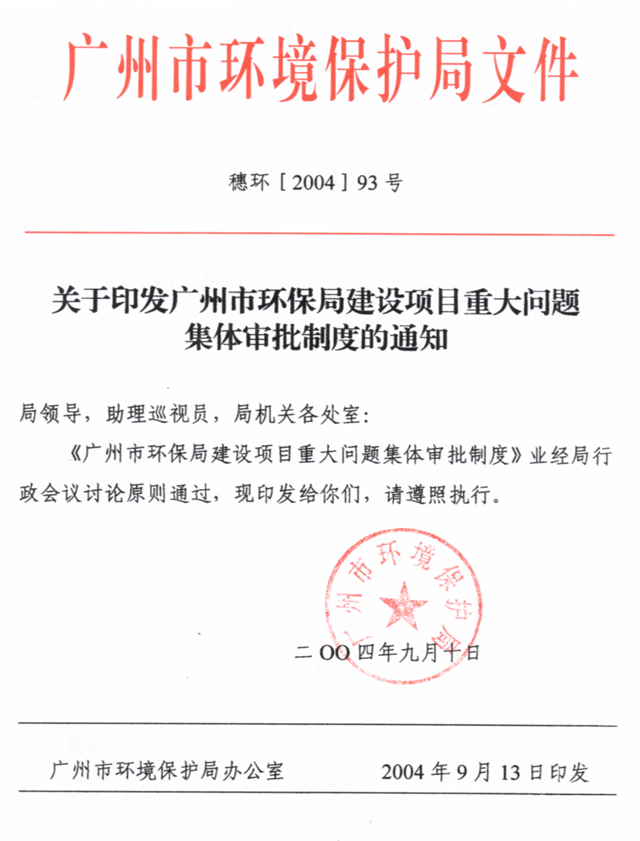 關(guān)于印發(fā)廣州市環(huán)保局建設(shè)項目重大問題集體審批制度的通知
