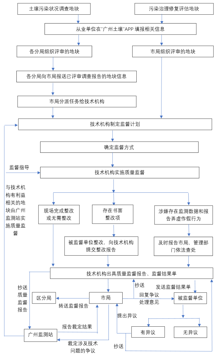 由市生態環境局各分局負責評審的土壤污染狀況調查報告,其質量監督主要由各分局視情組織,可參考本指引。