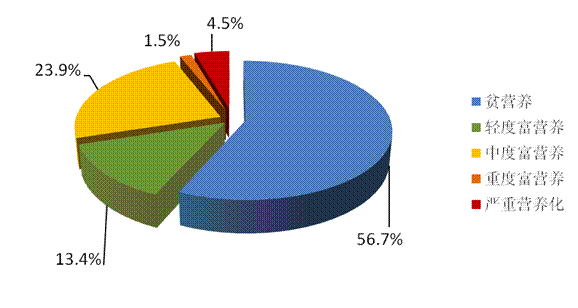 全省近岸海域功能區營養程度總體較輕,呈貧營養狀態的功能區有38個,占全省的56.7%,呈輕度富營養狀態的有9個,占全省的13.4%,呈中度富營養狀態的有16個,占全省的23.9%,呈重度富營養狀態的有1個,占全省的1.5%,呈嚴重富營養化的有3個,占全省的4.5%。