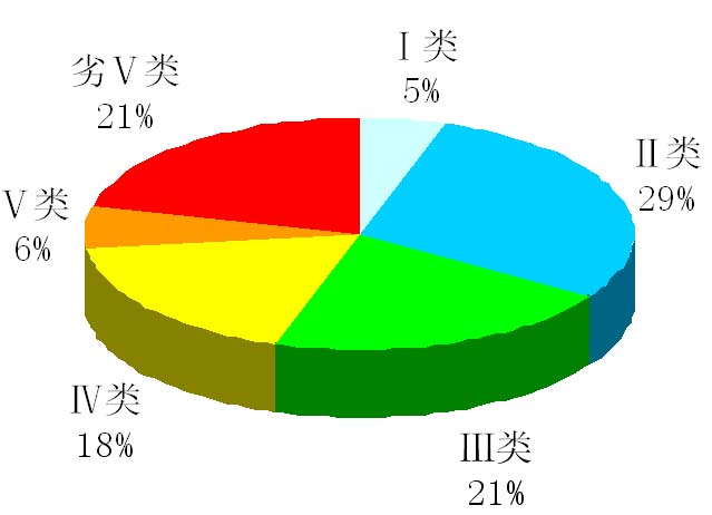 Ⅰ~Ⅲ類斷面比例為55.0%,劣Ⅴ類為20.8%;與上年相比,七大水系Ⅰ~Ⅲ類斷面比例升高5個百分點,劣Ⅴ類斷面比例下降3個百分點。