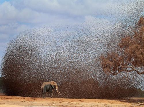 中新網3月2日電 據外電1日報道,最近一名攝影師在非洲的大草原抓拍一組小鳥為了保衛一個水坑,群起攻擊一頭口渴的大象的照片。最終,面對小鳥強大的攻勢,強悍的大象也只能落敗而逃,另尋別處水源。
