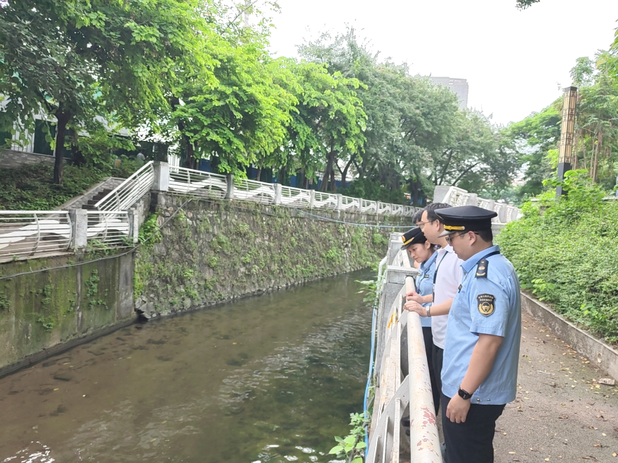 行動采取“非屬地生態環境局+屬地街道”聯合編組模式,組成三個巡查小組,分赴沙河涌上、中、下游河段開展全面排查。巡查聚焦污水直排、排污口異常、雨水口晴天溢流等城市河涌常見問題,同步記錄河岸違法建設、垃圾堆放及生態破壞線索,實現問題發現全覆蓋。通過交叉巡查,有效避免屬地管理盲區,增強問題識別的客觀性與準確性。