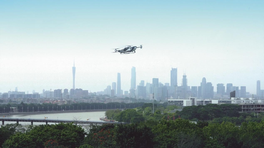 旅航者X2環繞廣州大學城飛行