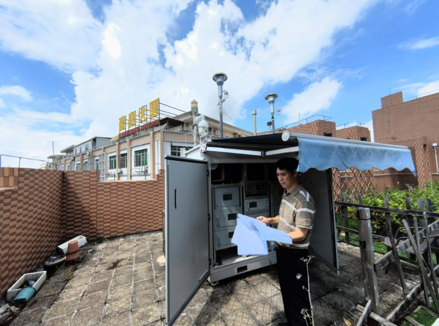 (監(jiān)測(cè)人員現(xiàn)場(chǎng)檢查空氣自動(dòng)站運(yùn)維情況)