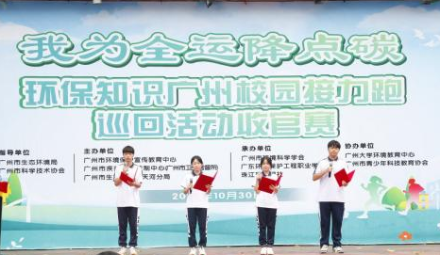 10月30日下午,“我為全運降點碳”——環保知識廣州校園接力跑巡回活動收官賽在廣東環境保護工程職業學院舉行。