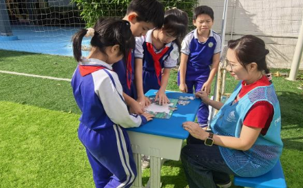 南沙鐵英學校老師在與觀賽同學作環保問答