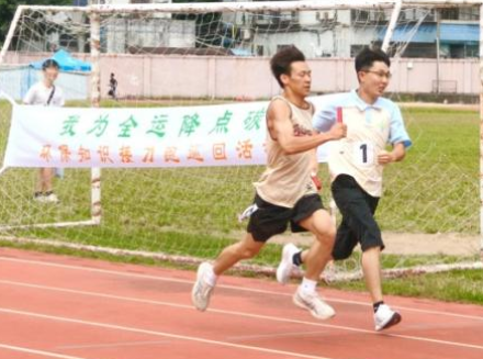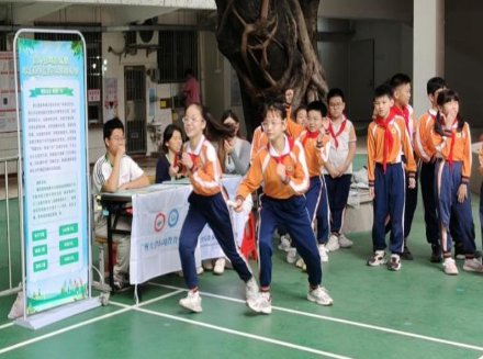 活動在接力跑道上設置“零碳全運·生態廣州”“零碳全運·無廢廣州”“零碳全運·美麗廣州”“零碳全運·健康廣州”等主題展位,參賽學生需要在攤位上完成互動后,完成接力跑,從而學習水環境保護、碳足跡、碳中和、垃圾分類及日常環境健康等知識和生態文明理念。各學校在此基礎上別出心裁,形成各自特色。