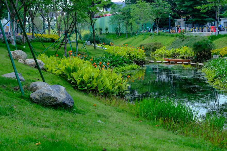 全長(zhǎng)5.2公里的大沙河,穿過(guò)廣州花卉博覽園,是名副其實(shí)的“城市綠野仙蹤”。這里曾是城鄉(xiāng)融合地帶的治理痛點(diǎn),污染來(lái)源復(fù)雜、河道淤泥堆積,市民臨河難親水,生態(tài)價(jià)值被嚴(yán)重遮蔽。如今通過(guò)生態(tài)修復(fù)實(shí)現(xiàn)蝶變,年均水質(zhì)穩(wěn)定達(dá)III類(lèi),獲得國(guó)際風(fēng)景園林師聯(lián)合會(huì)(IFLA)“洪水和水資源管理類(lèi)榮譽(yù)獎(jiǎng)”,成為國(guó)際認(rèn)可的生態(tài)治理標(biāo)桿,更以“生態(tài)+”的融合發(fā)展模式,讓“綠水青山”持續(xù)釋放價(jià)值。