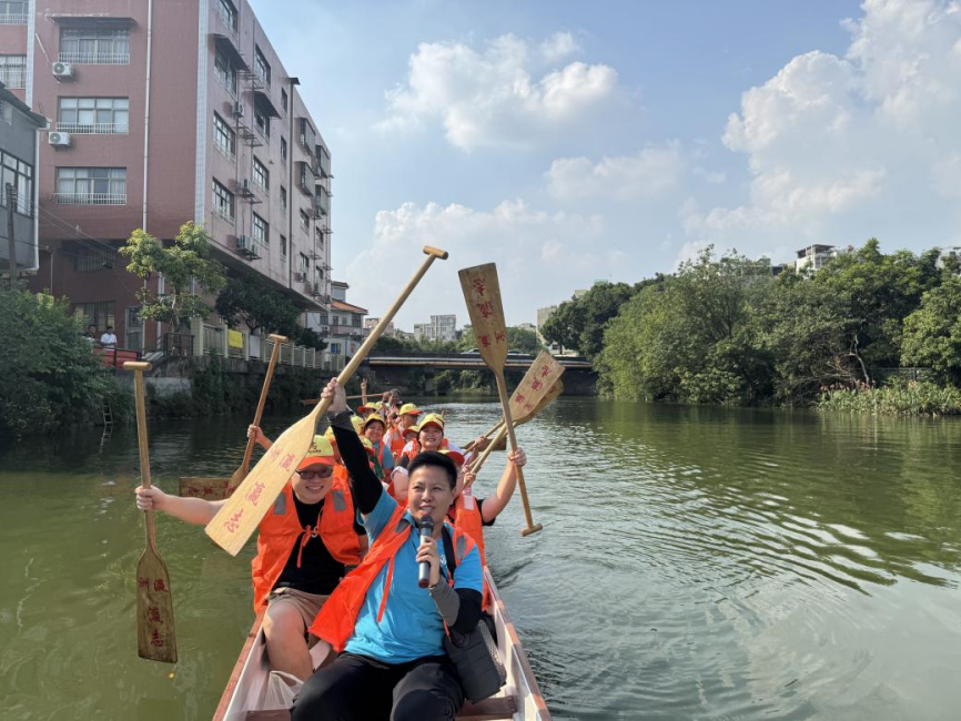2025年10月,“小洲walk龍舟體驗營”在小洲村開展,市民在西江涌的良好水質中體驗多元親水活動、觸摸非遺水鄉文脈。(圖片來源:微社區e家通海華綠洲)