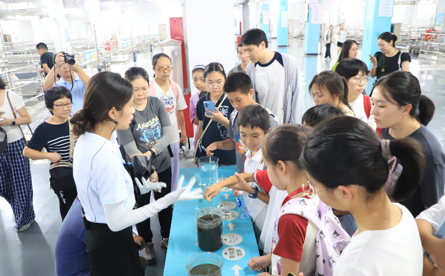 活動第二站,采風團走進廣州水投凈水公司瀝滘凈水廠,觀察污水由濁變清的神奇凈化過程,理解水資源循環再生的城市智慧。