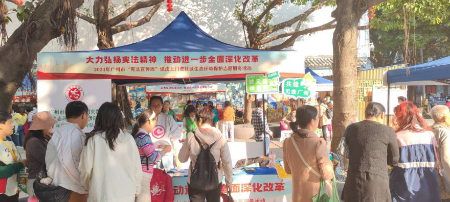 為深入學習宣傳貫徹習近平法治思想,增強全民法治意識與生態環保意識。2024年12月7 日,廣州市環境保護宣傳教育中心(以下簡稱“宣教中心”)聯合廣州市生態環境局越秀分局在越秀區北京街城隍廟社區,開展以“大力弘揚憲法精神,推動進一步全面深化改革”為主題的2024年廣州市“憲法宣傳周”生態環境保護宣傳活動。