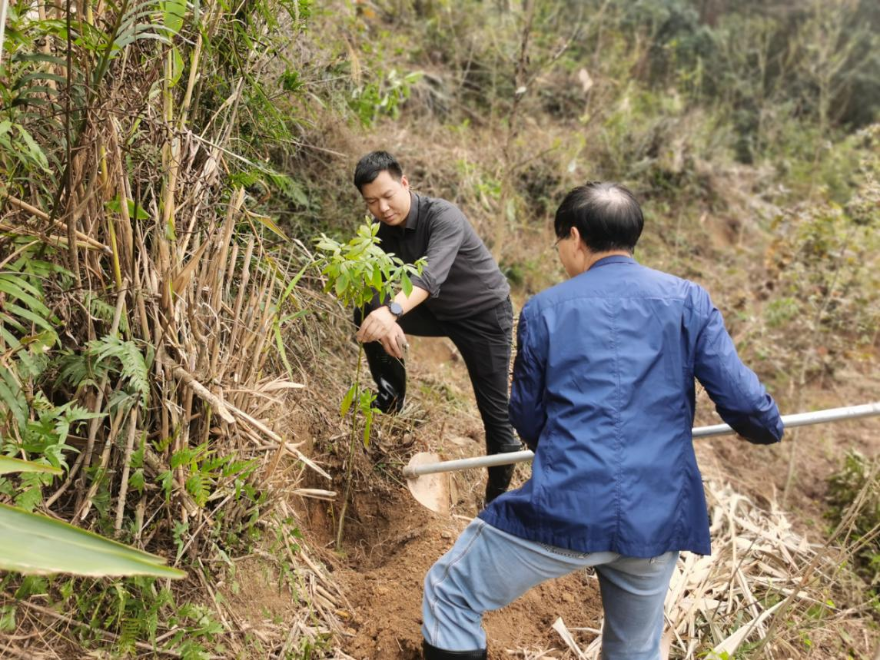 活動現場,大家熱情飽滿,按照任務分配,三人一組開展植樹活動。崎嶇的山路、泥濘的小道絲毫沒有阻擋大家的勁頭,挖坑、扶苗、填土,大家密切配合,銜接有序。經過大家的共同努力,金絲楠、樟樹等一株株新樹苗在春風吹拂下昂首挺立,煥發出勃勃生機,呈現出一片濃濃春意?;顒咏Y束前,望著自己親手種下的一抹抹綠意,大家紛紛表示,一下午的汗水此刻有了答案。