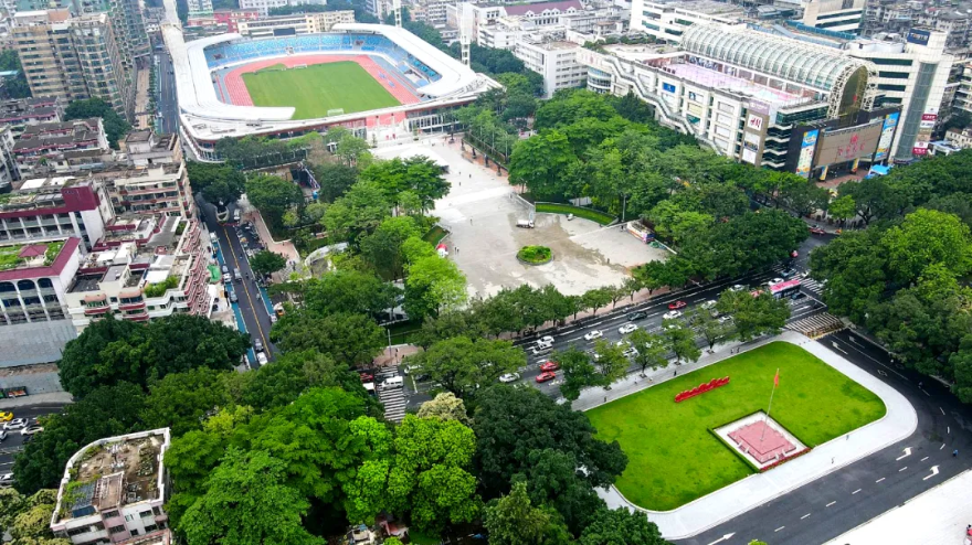 廣東省人民體育場所在地,自唐代起就用于體育,是迄今我國以傳統形式保存時間最長,也是唯一的古體育場。作為全運會賽事場館,省人民體育場“全要素”提升工程以貫通一條從“體育地標—英雄廣場—烈士陵園”的750米南北視覺軸線為核心,讓“賽時盛會”真正變為“賽后財富”。通過實施建筑立面、林下綠地、夜景燈光、石凳基座等“節儉精修”,一掃以往底層商鋪業態混雜的舊貌,重塑街區“顏值”。同時,設置港灣式停車區,一體化鋪裝機非分離車道,拓寬烈士陵園地鐵站連接廣場的人行道,優化廣場兩側的綠植空間,既提升了賽事場館的“零障礙”通達性能,又改善了街區綠化生態景觀。