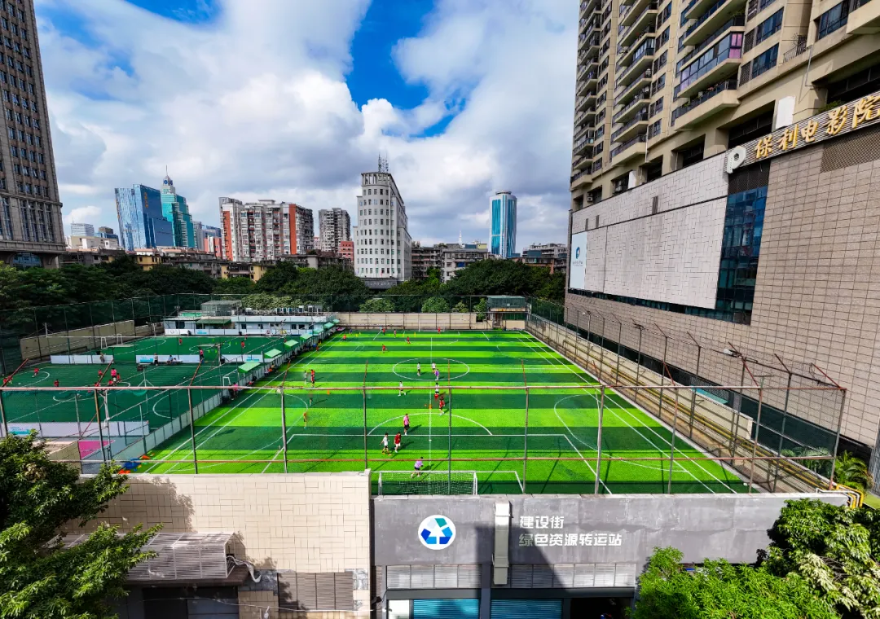 通過挖潛城市“金角銀邊”,一個個便民惠民的“燈光球場”,讓全民健身在越秀“舉步可就”。廣州大橋二沙島段橋底場地分設了籃球場、網球場、匹克球場、健身區和便民服務區等,并規范了人車分流的安全流線,打造了“上層通行、橋底運動”的立體集約空間范本。粵盛中環的空中足球場建在社區垃圾站頂樓,通過密閉化設備更新、地面加固、景觀包裝和安全防護等多重措施,讓地面層的垃圾轉運站成功“隱身”,徹底消除了異味擾民問題。環市東核心區一個110千伏中旅變電站的頂層,也改造成一個標準的11人制足球場,實現了公共服務提質升級與空間資源集約利用的雙贏。