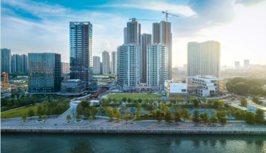 荔灣產業園打破“重產業、輕配套”的發展模式,堅持產業發展與配套建設同步推進,目前已基本完成“一所中小學、一家醫療衛生機構、一個生活區、一個商業區、一片公共綠地、一條連通城區的公共交通線路”的“六個一”工程,讓園區既是產業發展的高地,更是宜居宜業的幸福家園。園區商業配套日益完善,山姆會員店、東沙國際商貿港等陸續運營,交通方面持續推進白鶴沙大橋、如意坊放射線二期等周邊路網建設,全面提升通達性,構建起便捷高效的產城生活圈。