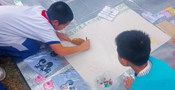 活動現場還開展了一項名為“趣味圖畫”的游戲,工作人員在現場準備了一塊寬大的畫布,邀請游園市民自由發揮創造力和想象力,或貼上具有代表性的植物構件,或繪畫自己理想中的植物樂園,或書寫一段對植物的贊美詩,將自己對華南國家植物園的熱愛和對自然保護的想法表達出來。