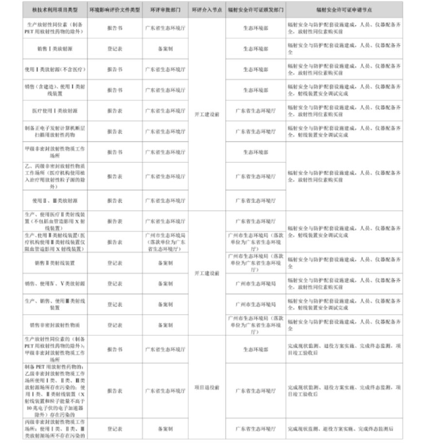 圖“一表通”—《核技術利用項目需履行環保手續匯總表》