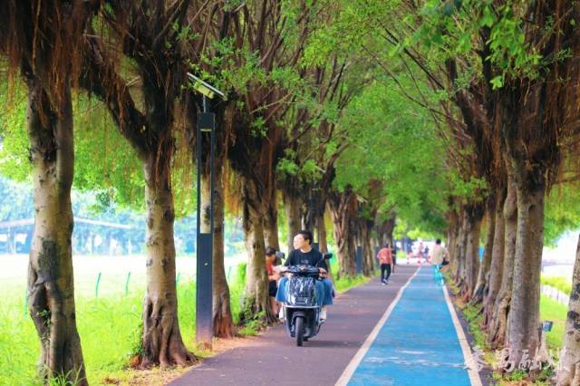 碧道兩旁枝葉交錯,遮蓋住半條街的暑熱