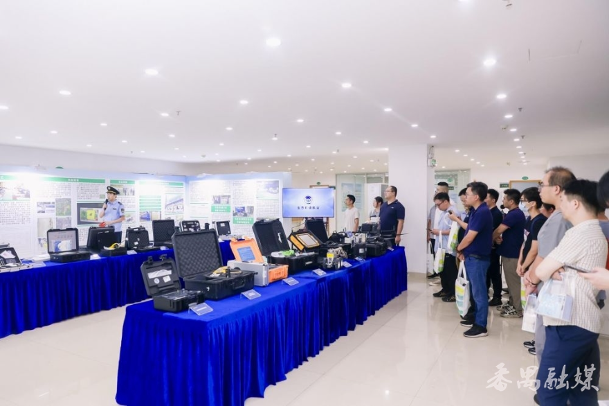活動伊始,番禺分局講解員從黨建引領和執法規范化建設展開介紹,以黨建引領機構設置規范化、裝備配備現代化、隊伍專業化和管理制度化。隨后,講解員圍繞包容審慎監管、科技賦能執法、十五運會保障、典型案例突破四大主線,系統講解了番禺分局在優化執法方式、提升監管效能方面的探索。在生態治理實踐方面,現場展示的“一河一冊”動態治理體系引人注目——通過融合自動監測系統、無人船走航與河涌檔案數據,精準鎖定污染源,實現精準推送;低空科技走航監測PM2.5等因子,掌握空氣質量特征,優化監管措施;推動38家企業完成固廢智能化升級改造,構建危廢“從產生到處置”的全鏈條保障體系,科技賦能讓生態監管更高效、更精準。