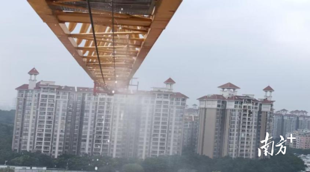 在車流量較大的機場高速與均禾大道、加石路交會處高速橋底,創新性安裝固定噴淋系統,設定每半小時噴淋一次、每次持續半小時的作業模式,對該區域道路揚塵起到顯著降塵效果,有效遏制“流動污染源”擴散。
