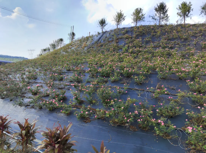 七彩月季公司利用廢棄碎石山的山坡種植月季。攝影:史成雷