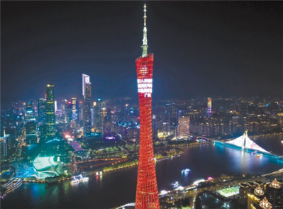 昨晚,廣州塔為廣州上榜“2025最具幸福感城市”亮燈。廣州日報全媒體記者蘇俊杰 攝