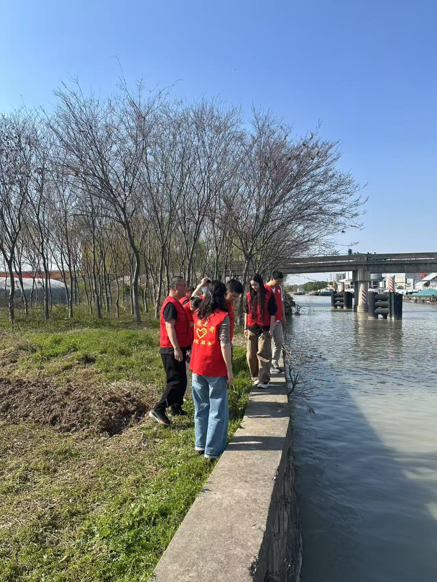 圖為民間河長在南湖區海鹽塘巡河
