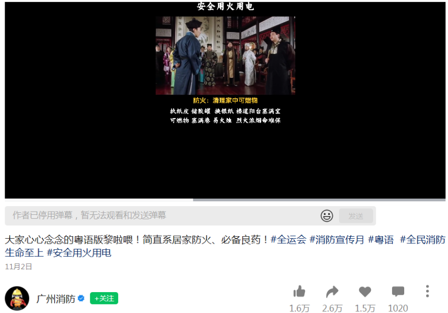 廣州消防:方言二創經典電影宣傳消防安全,傳播、互動效果較好