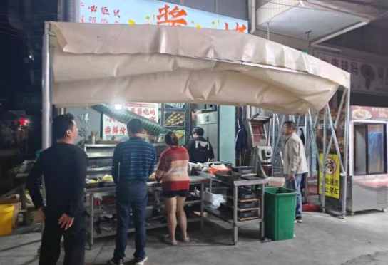 聯(lián)合整治行動中,聯(lián)合執(zhí)法組遵循“管罰結(jié)合、分類精細(xì)化管理”的原則,一是通過車載喇叭宣傳以及與商戶交流等方式,勸導(dǎo)沿街商戶、流動燒烤攤自行整改違規(guī)經(jīng)營行為,并引導(dǎo)流動攤販到設(shè)定的夜市街區(qū)規(guī)范經(jīng)營。二是采取錯時、延時執(zhí)法方式,不定時不定路段開展機(jī)動整治,發(fā)現(xiàn)違規(guī)問題立即整改,對不配合或?qū)覄癫桓牡牟扇⌒姓柑幜P或暫扣違章經(jīng)營工具。21日當(dāng)晚,聯(lián)合執(zhí)法組共出動30人次的執(zhí)法力量,圍繞曙光路、天貴路、云山路、商業(yè)大道、寶華路、花城路及花城北路、五華直街、鳳華路、建設(shè)路、新花街、龍珠路等進(jìn)行巡查整治,教育規(guī)勸燒烤檔、麻辣燙20余宗,沒收簡易燒烤爐4個,扣押大型燒烤爐3個。