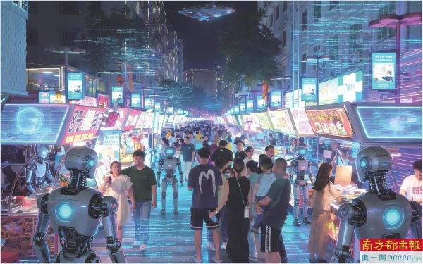花都區田美村,在“四方共建”之下,從昔日雜蕪中長出充滿煙火氣的夜市。AI輔助生成圖片