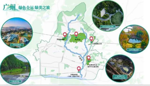 “綠色全運 綠美之旅”生態文旅路線(路線點位:華南國家植物園→火爐山森林公園→天河濕地公園→廣東奧林匹克體育中心體育場→車陂涌碧道)